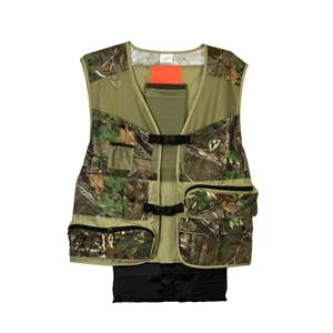Start by layering your camouflage clothes. You don’t need head-to-toe camo, but having at least two pieces will help create a cohesive look. Then, add orange safety gear on top.