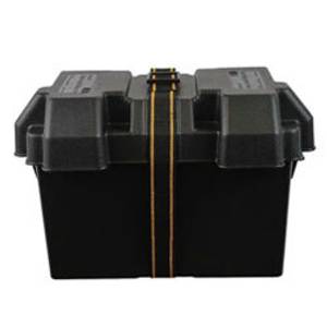 After you’ve disconnected both terminals, you’ll need to take the battery off the hold-down and/or loosen the bracket at the battery’s base that holds it in place. These can be hard to reach, so you may need to use the ratchet with an extension to help.