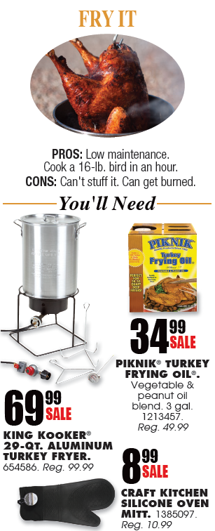 Cons: You can’t stuff your bird, and the hot oil can burn your bird and be dangerous if not handled properly.