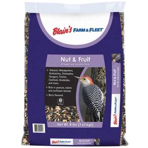 Today's PricePrice: $ 14 . 99Blain's Farm & Fleet Nut & Fruit Bird Seed, 8 lb, Berry-Flavored Blend with Peanuts, Raisins, Sunflower Kernels
