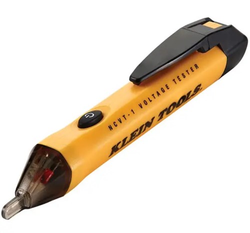 It has recently come to our attention that one of our products, the NCVT-1 NONCONTACT VOLTAGE TESTER, has a potential safety issue that Klein Tools would like to rectify. The on/off button of the NCVT-1 is intended to be pressed down and then released. If the button remains depressed during the power on or power off cycle, the tip of the tool remains illuminated in green, indicating the tool is “ready to detect voltage,” when it is not.