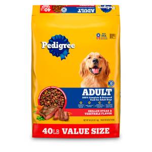Today's PricePrice: $ 26 . 99Pedigree Adult Dry Dog Food, Grilled Steak & Vegetable 40 lb