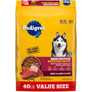 Today's PricePrice: $ 31 . 99Pedigree High Protein Adult Dry Dog Food, Beef and Lamb Flavor, 30 lb