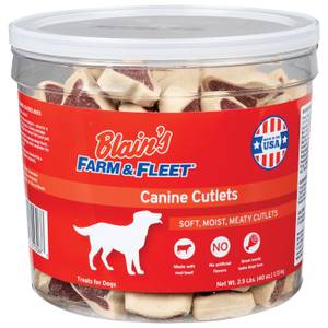 Today's PricePrice: $ 9 . 99Blain's Farm & Fleet Canine Cutlets Dog Treats, 40 oz Real Meat
